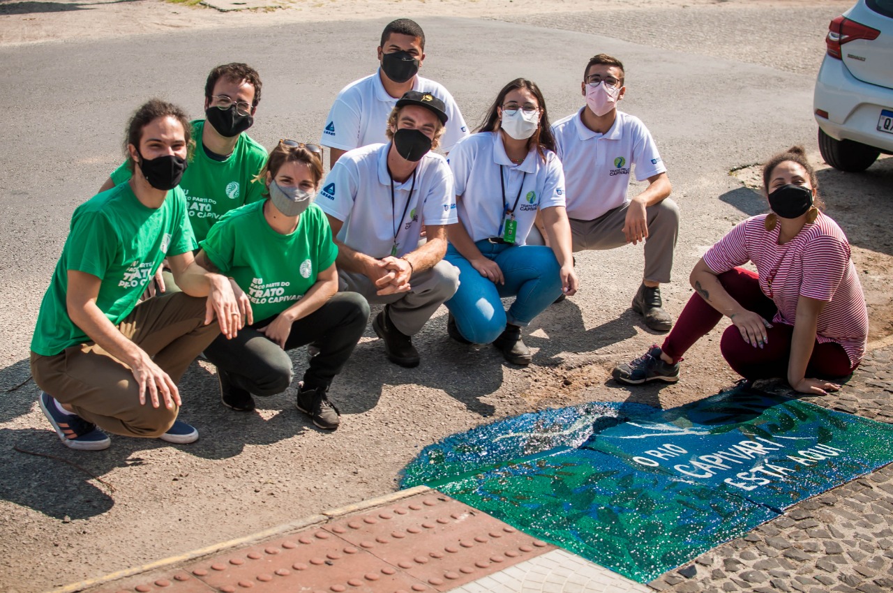 Uma representação do leito do rio na calçada e na rua, ela busca sensibilizar os passantes e fazer refletir, através da arte, sobre a necessidade da ação consciente de cada um para a proteção dos bens naturais da cidade: tudo o que entra em uma galeria de drenagem como aquela, junto com a água da chuva – papel, bitucas, plástico, esgoto clandestino –, vai atingir o Capivari e a praia.