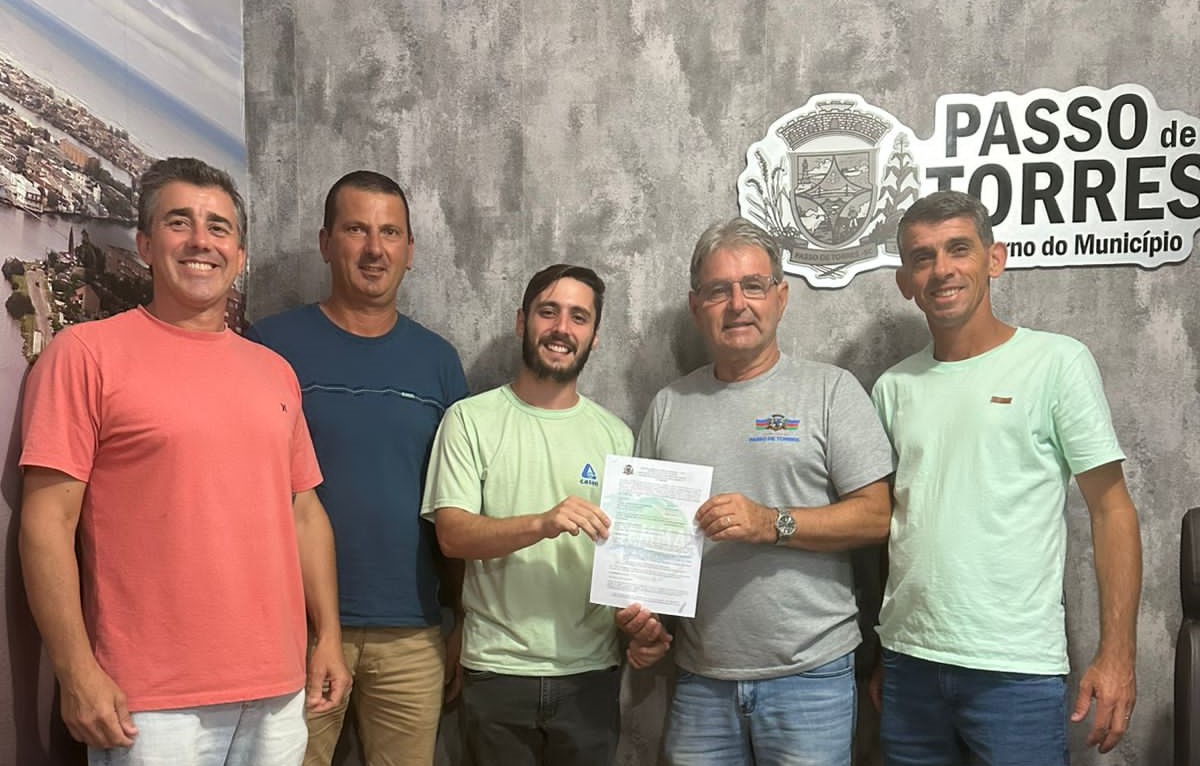 A CASAN (Companhia Catarinense de Águas e Saneamento) deu um importante passo para a implantação do Sistema de Esgotamento Sanitário de Passo de Torres. Nesta terça-feira (11), a obra da Estação de Tratamento de Esgoto (ETE) da cidade recebeu uma Licença Ambiental Prévia da Secretaria Municipal de Meio Ambiente. A notícia foi tratada pelo chefe da Agência local, Wellington Araújo, junto ao prefeito Valmir Rodrigues em uma reunião em seu gabinete. A reunião também contou com a presença do vice-prefeito, Mateus Porto, do secretário de Meio Ambiente, Juliano Bugallo Borba, e do secretário de Administração, André Porto.