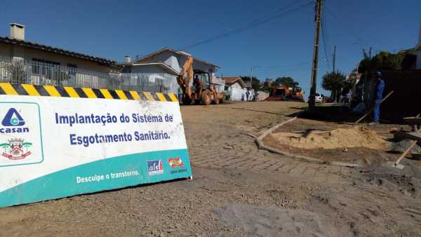 A instalação das redes coletoras atualmente acontece em quatro bairros São Francisco; Aparecida, Água Santa e Bosque. Além das redes, desde setembro também está em andamento o trabalho de construção da Estação de Tratamento de Esgoto (ETE).