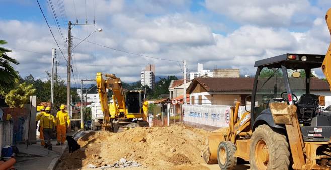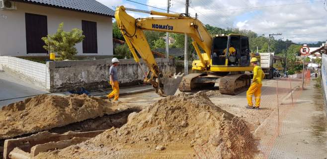 Seguem a todo vapor as obras de implantação da rede de saneamento básico no município de Lauro Müller. Atualmente as frentes de trabalho se concentram nas Ruas Pedro Raimundo e Paulo Franquelino, no Bairro Sumaré. Outras frentes atuam às margens da SC-390, trecho defronte ao Posto Chaminé, na SC-446 e Rua Herculano da Silva, na saída para Treviso.