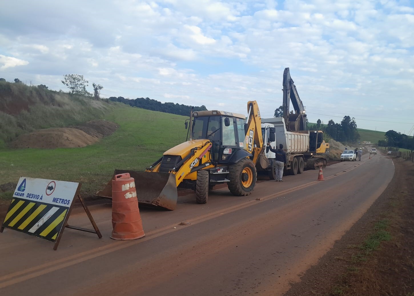 A CASAN informa que devido às obras de implantação da adutora de água tratada do Projeto Chapecozinho o trânsito está parcialmente interrompido em dois pontos nos municípios de Xaxim e Xanxerê.