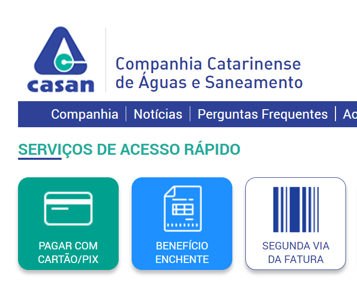 Para acessar o portal, basta ir em casan.com.br e clicar no botão “Pagar com Cartão/Pix”. Foto: Acervo CASAN.