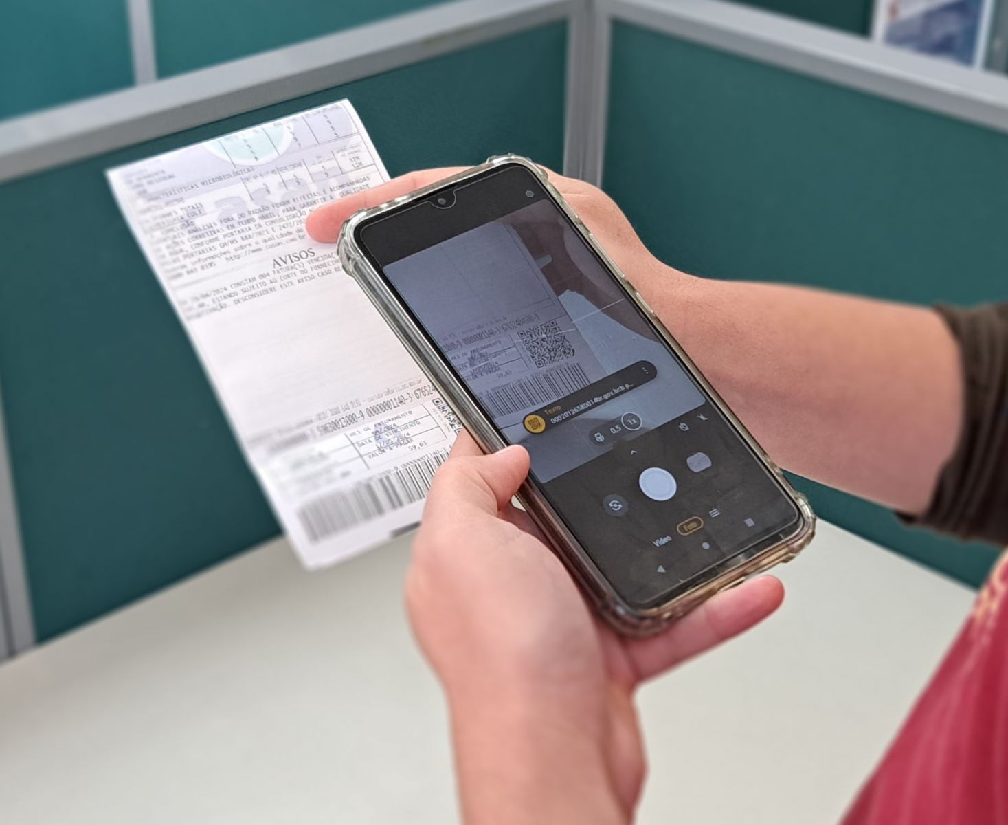O pagamento via Pix pode ser feito escaneando um QRCode na fatura. Foto: Acervo CASAN.