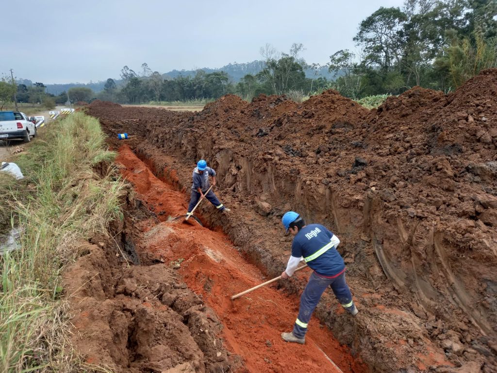 “Em alguns pontos, os trabalhos vão aguardar porque a rede passará por áreas de plantação de arroz. Como agora está iniciando a época de plantio, precisamos esperar até a colheita para não prejudicar os agricultores. Mas, durante este período, vamos avançando os outros trechos para não atrasar o cronograma”, explica Elena de Almeida Afonso, uma das profissionais que fiscaliza os trabalhos pela CASAN. A Companhia trabalha com a meta de colocar a adutora em operação em janeiro de 2022.