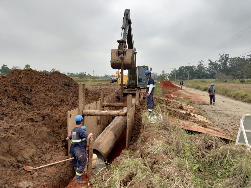 Iniciadas no final do mês de junho, as obras da nova adutora do Sistema Integrado de Abastecimento de Criciúma chegam a novos trechos. Atualmente as equipes trabalham no assentamento de tubulações que passam rente à Estrada Jerônimo Destro, no Município de Nova Veneza.