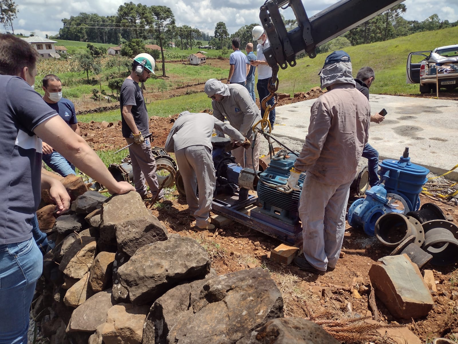 Em São Miguel do Oeste, foi iniciada a instalação de um booster (sistema de bombeamento) na adutora de água bruta do Rio das Flores. A meta é obter um incremento de 30% na captação de água.