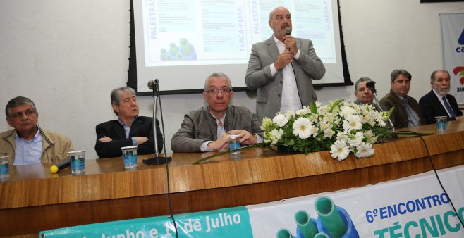 Depois de enumerar algumas das principais obras de água e esgoto em andamento na Capital e no interior, realizadas com aval do governo estadual e com o suporte de agências internacionais e nacionais de fomento, o presidente conclamou o corpo técnico para, em conjunto com a diretoria, enfrentar desafios.