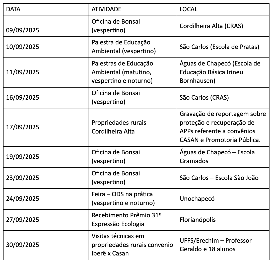 “Em todas as ações vamos também compartilhar os resultados do Projeto Mata Ciliar, pois com essa parceria com a CASAN há quase 20 anos trabalhamos com a proteção e recuperação de Áreas de Preservação Permanente (APPs) no entorno de nascentes e cursos d’água”, explica explica Geciane Pereira Jordani, que integra a equipe executiva do Consórcio Iberê.