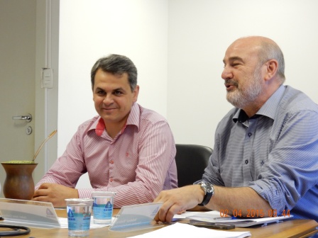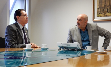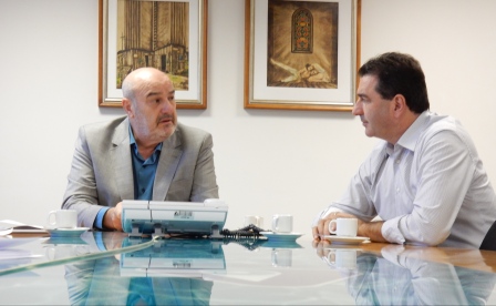 Presidente da CASAN, Valter José Gallina, recebe Vice-prefeito do município de Maravilha, Sandro Donati, na sala da presidência / 15 de abril de 2015