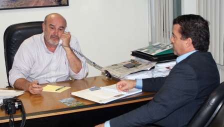 Prefeito de Dionísio Cerqueira, Altair Cardoso Rittes, e o Presidente da CASAN, Valter Gallina em reunião na sala da presidência / 01 de abril de 2015