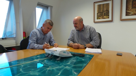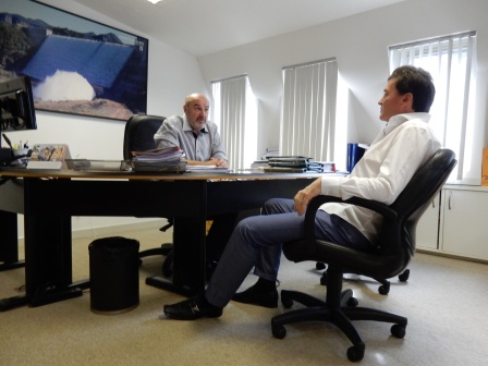 Presidente da CASAN, Valter Gallina, e o Prefeito de Turvo, Ronaldo Carlessi em reunião na sala da presidência / 07 de abril de 2015