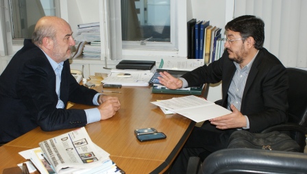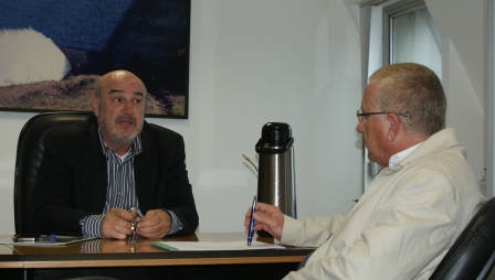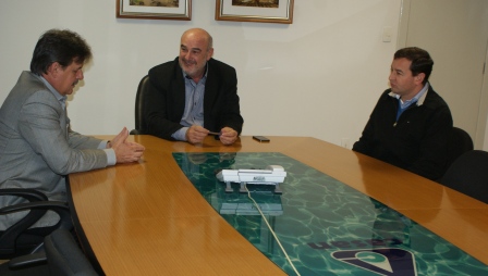 Presidente da CASAN, Valter Gallina, prefeito de Santo Amaro, Sandro Carlos Vidal, em reunião na sala da presidência / 15 de junho de 2015