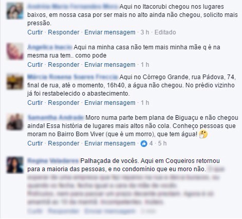 Redes sociais trazem relatos nos quais a água chegou à rua, mas o imóvel continua desabastecido
