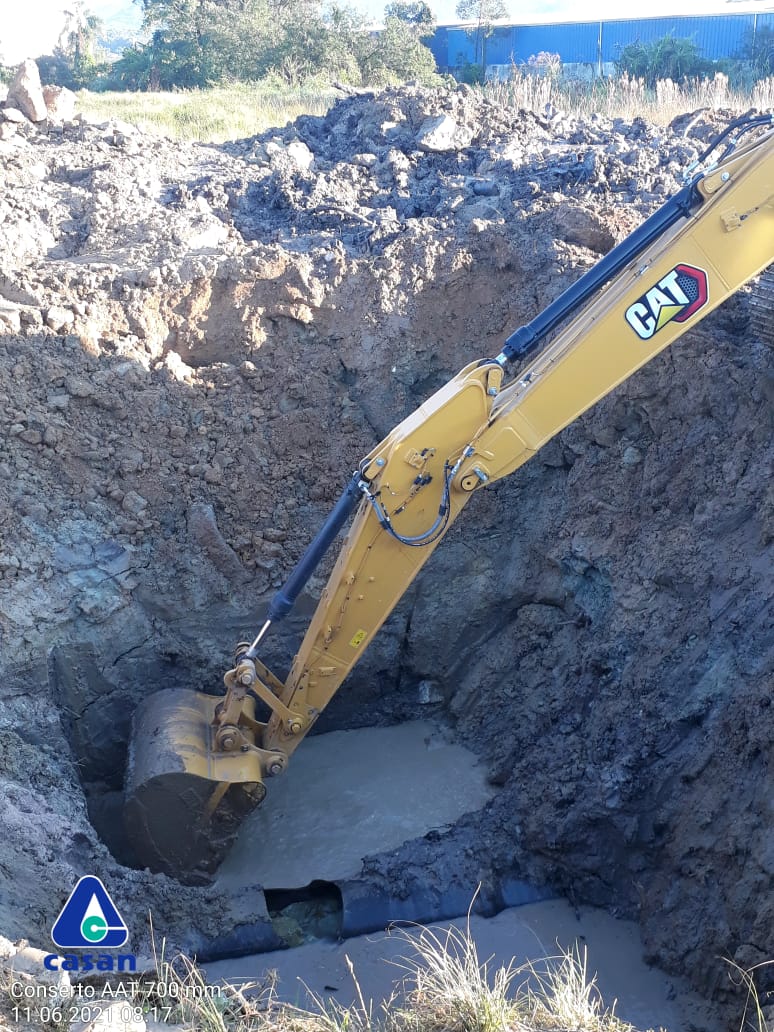 Desde a madrugada as equipes da CASAN estão trabalhando no local, nas proximidades do entroncamento da BR-101 com a BR-282. A operação é complexa, pois um trecho da adutora de grande porte está rompida a mais de 5 metros de profundidade. Os técnicos acreditam que o conserto só deve ser concluído ao final da tarde, quando o sistema de abastecimento será religado.