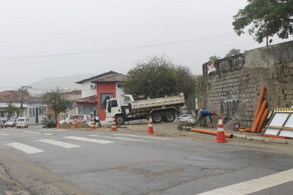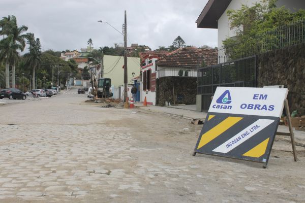 Na Praça do Centro Histórico, o trabalho se concentra na Rua Irineu Comelli, ao lado da Câmara de Vereadores. Nesse ponto, o assentamento da tubulação ocorreu em pouco mais de 40 metros. Agora, são construídas as caixas de inspeção, onde o morador vai fazer a ligação do esgoto após liberação por parte da Casan.