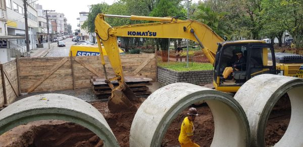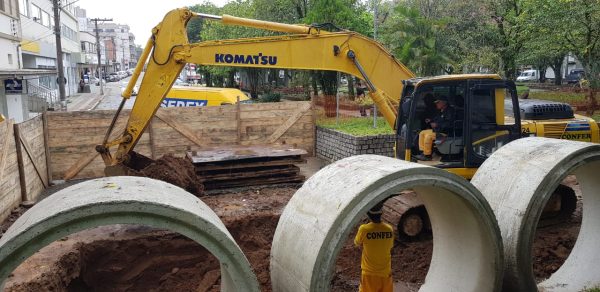 A construção da estação elevatória na Praça Henrique Lage, em Lauro Müller, chama atenção de quem passa pelo local. As obras iniciaram no local nesta quinta-feira (4). Quando entrar em funcionamento, a estação recebará por gravidade todo o esgoto dos bairros Centro, Santa Bárbara e Cairu.