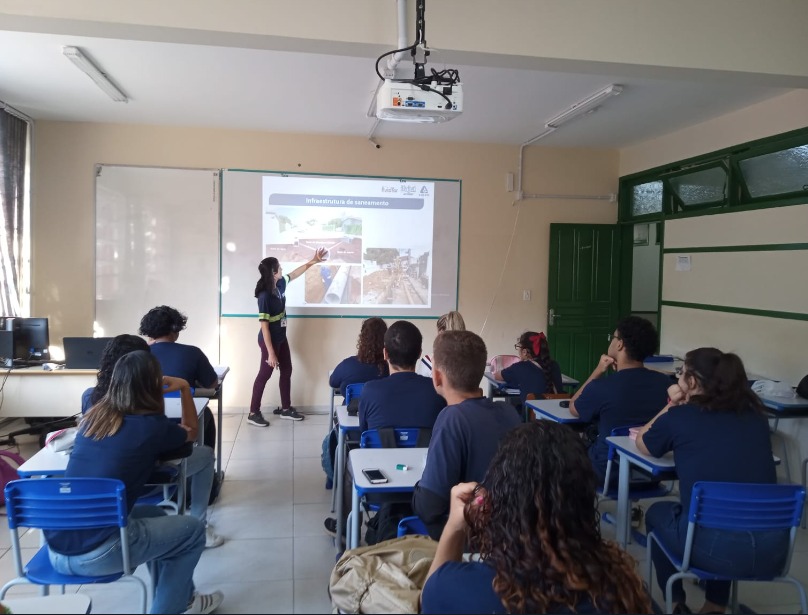 Quando o esgoto é ligado incorretamente à rede pluvial chega a rios e mar sem o devido tratamento, causando uma série de problemas socioambientais, como a poluição ambiental, degradação de mananciais, perda de biodiversidade e proliferação de doenças. Da mesma forma, ligação da água da chuva na rede de esgoto prejudica o funcionamento do sistema e pode causar diversos problemas, entre eles o extravasamento do esgoto nas ruas. A mensagem foi levada aos jovens, que puderam tirar suas dúvidas e trouxeram diversas curiosidades.