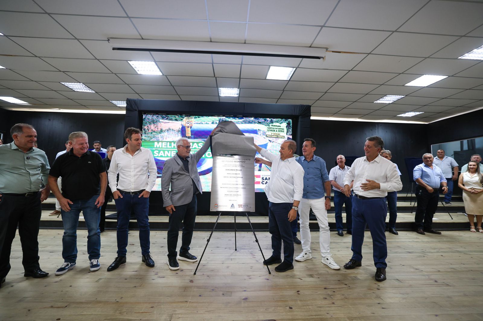 Governador Jorginho Mello e presidente Edson Moritz inaugurando o Sistema de Abastecimento de Pouso Redondo, durante o evento do Programa Santa Catarina Levada a Sério - Prestando Contas. Foto: Eduardo Valente/GOVSC