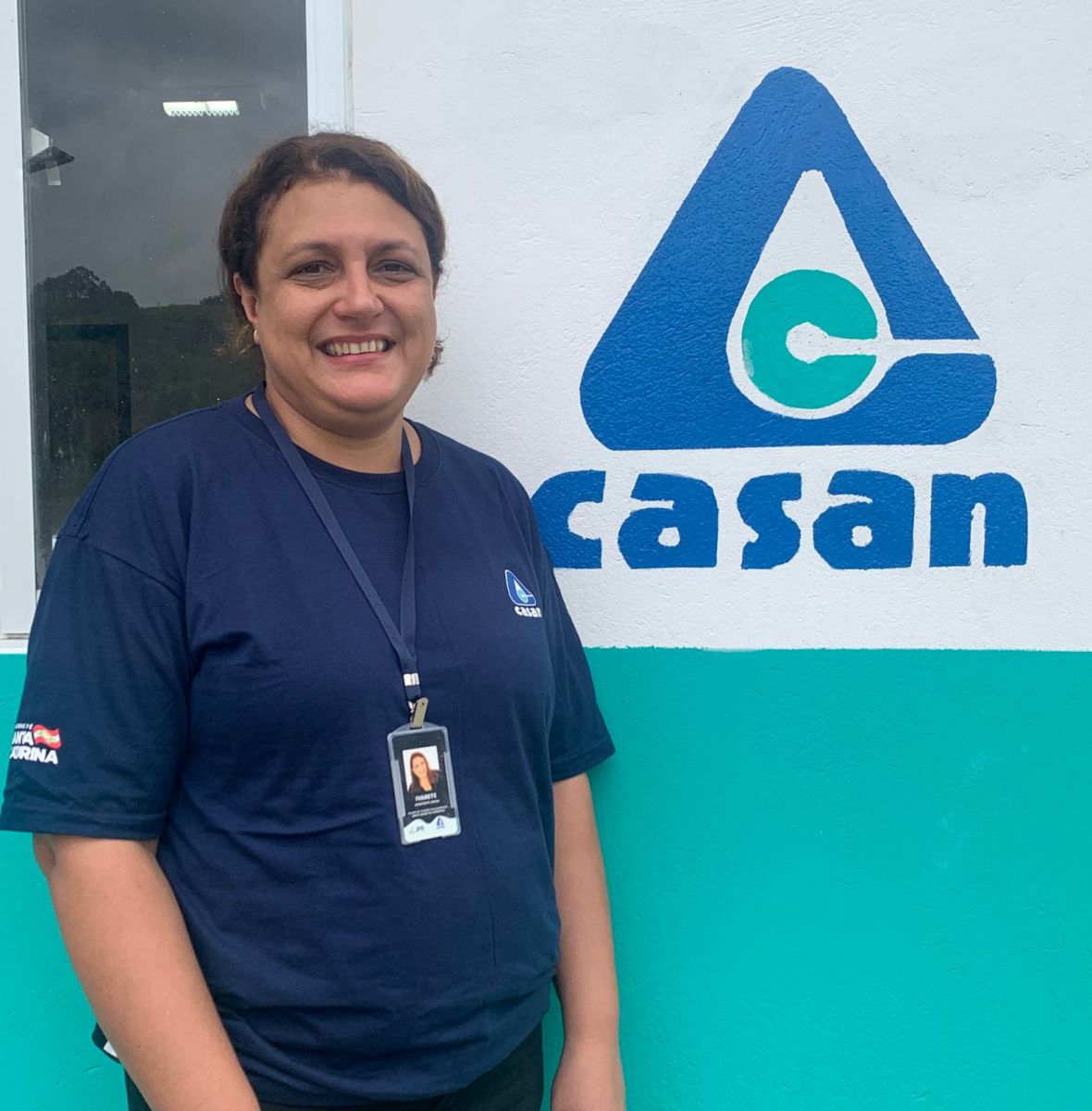 A profissional trabalha devidamente identificada com camiseta e crachá, se colocando à disposição para sanar dúvidas e levar informações aos moradores que serão contemplados com a ampliação dos serviços de coleta e tratamento de esgotos.