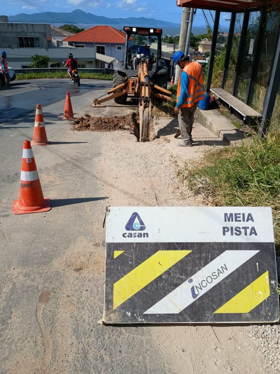 A CASAN (Companhia Catarinense de Águas e Saneamento) está renovando a rede de distribuição de água na Rua Docilicio Luz, no Bairro São Luiz, no Morro do Avaí, em São José.