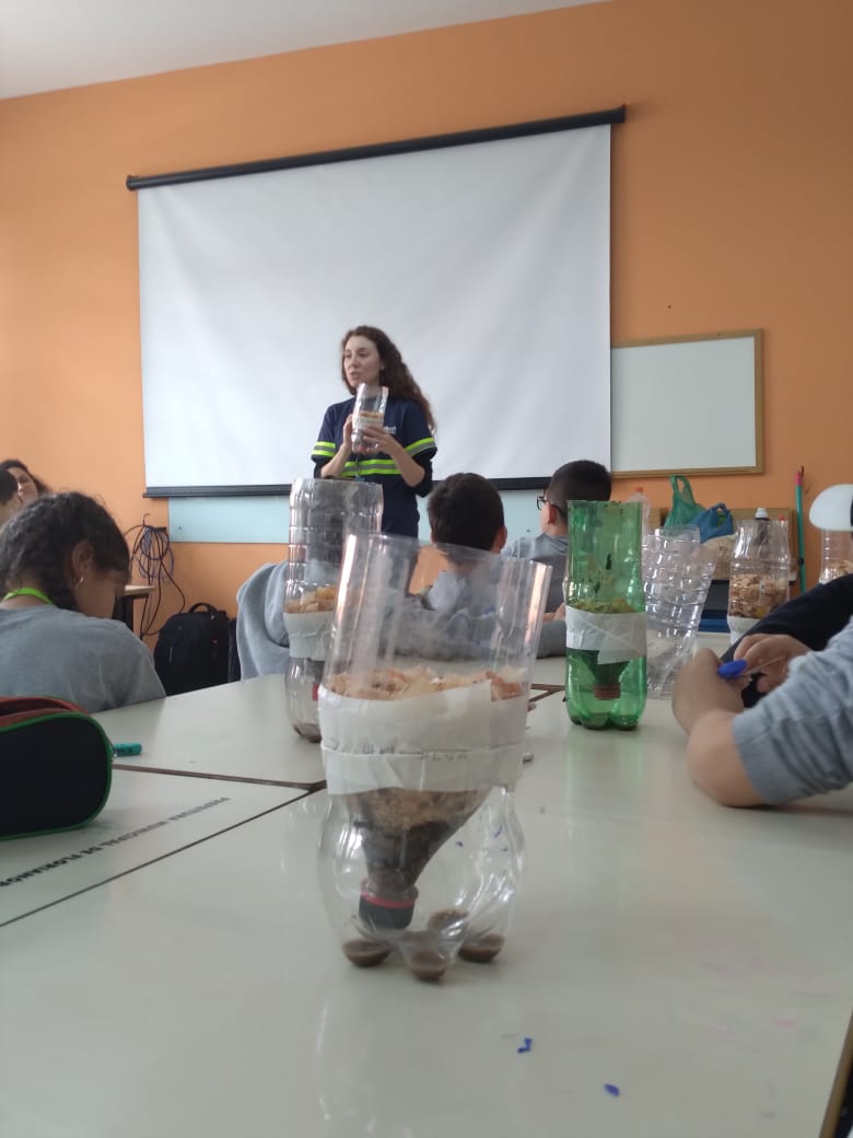 As oficinas ensinaram para as crianças o processo da compostagem, uma alternativa simples que pode ser adotada para reduzir a produção do lixo doméstico e, consequentemente, a quantidade de resíduos enviada aos aterros sanitários. A compostagem é um processo natural que transforma os restos de alimento em compostos orgânicos ricos em nutrientes, que podem ser utilizados como adubos em hortas e jardins. As crianças aprenderam a produzir uma composteira doméstica utilizando produtos recicláveis.