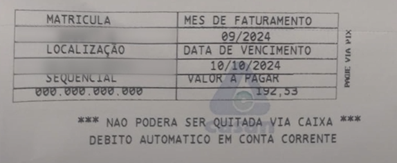 Trecho final do espelho da fatura, com a informação do Débito Automático. Foto: Acervo CASAN.