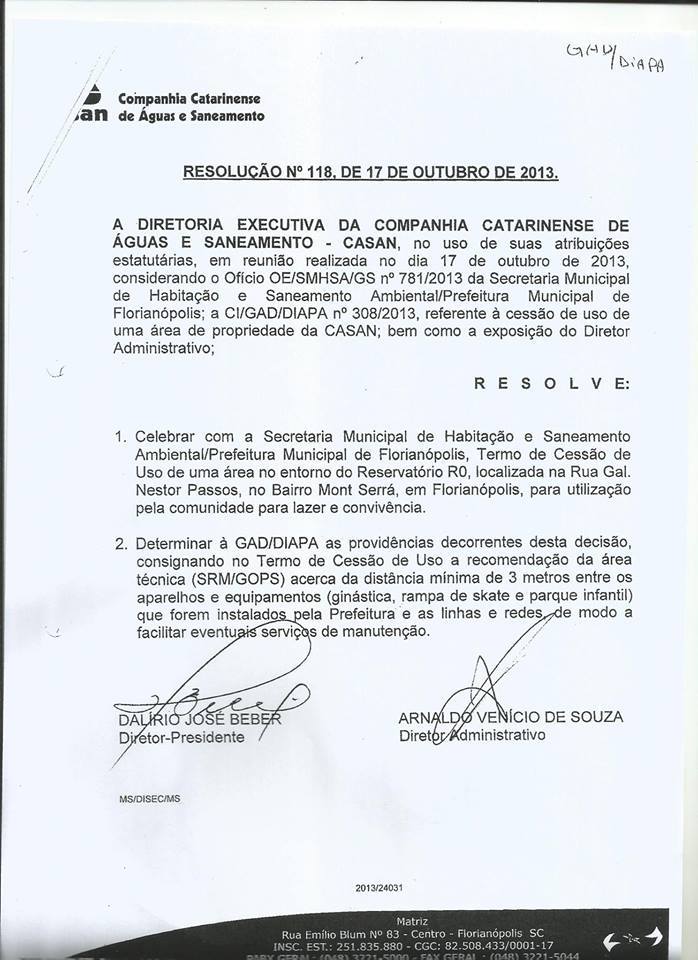 Uma área cedida pela CASAN vai abrigar um dos projetos comunitários mais especiais de Florianópolis. No alto do Mont Serrat - o Morro da Caixa d’Água -, a Prefeitura Municipal, a FLORAM, o Instituto Vilson Groh e a WOA Empreendimentos se propõem a criar um espaço de convívio para aquela comunidade.