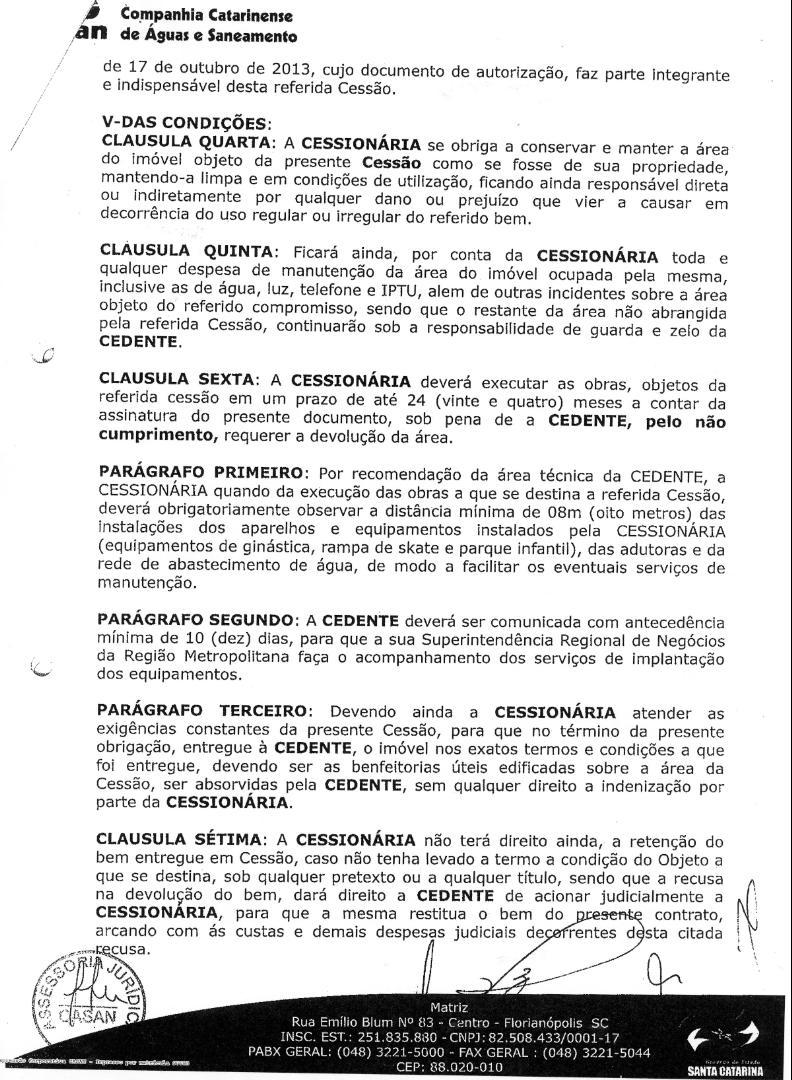 O terreno de 7.023 metros quadrados, herdado pela CASAN, foi cedido à Prefeitura em 31 de outubro de 2013 para “uso gratuito como área de lazer e convivência”. O reservatório continua até hoje em operação, abastecendo parte dos bairros Centro, Saco dos Limões e Agronômica.
