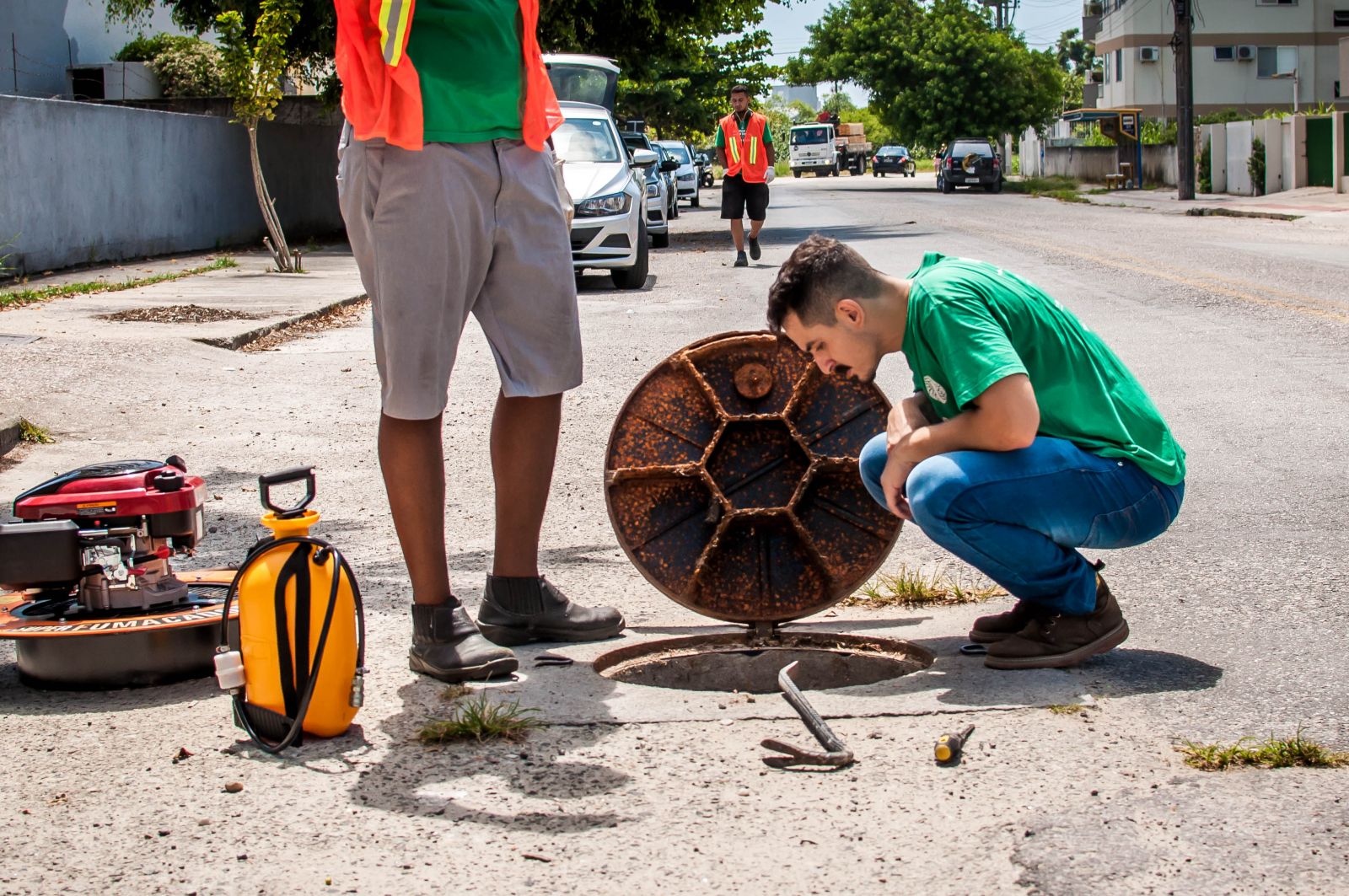Um prédio de oito apartamentos foi flagrado pela equipe com o extravasor de fossa conectado à rede de drenagem pluvial. Dois lacres – medida que interrompe na hora o fluxo irregular e força a regularização – foram efetuados no local.