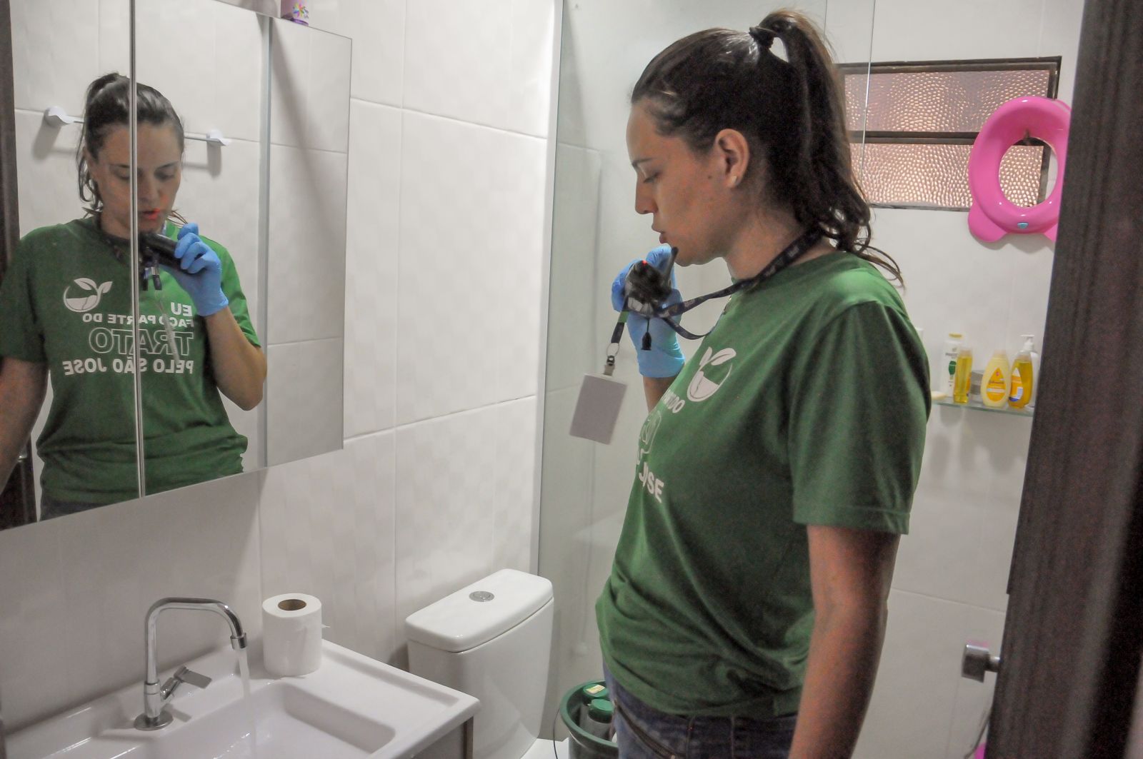 As equipes visitam as propriedades com o objetivo de orientar a correta ligação à rede coletora de esgoto da CASAN. Ao constatar irregularidades, os moradores são orientados sobre como proceder para fazer as adequações.