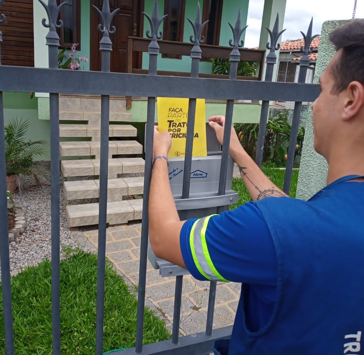Atuando em duas frentes de trabalho, o Programa Trato por Criciúma iniciou a distribuição de materiais informativos sobre regularização sanitária de imóveis para moradores dos bairros São Luiz e Grande Próspera. Durante as visitas das equipes, os moradores recebem dois materiais: um folder explicativo sobre o programa e o Guia Completo de Regularização, que auxilia a comunidade a identificar se o imóvel está regular ou não, e incentiva o agendamento da inspeção.