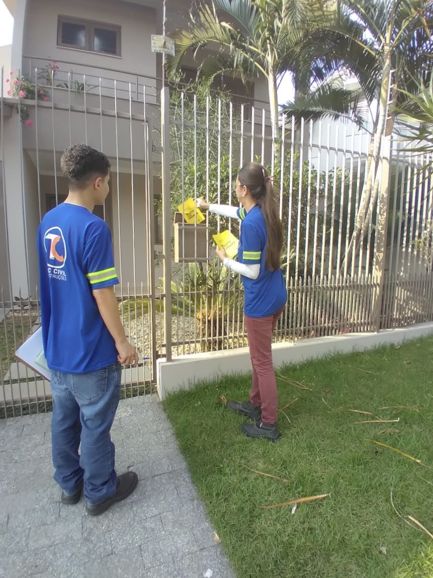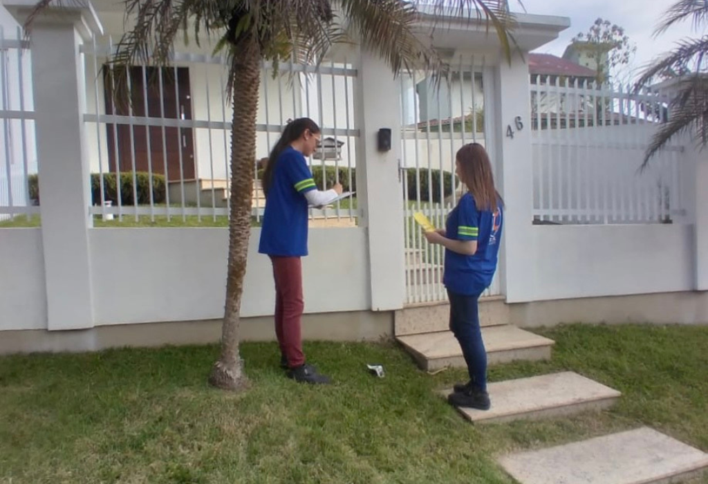 Os profissionais estão entregando comunicados para a primeira inspeção do imóvel com relação à ligação ao Sistema de Esgotamento Sanitário (SES) da Companhia Catarinense de Águas e Saneamento (CASAN).
