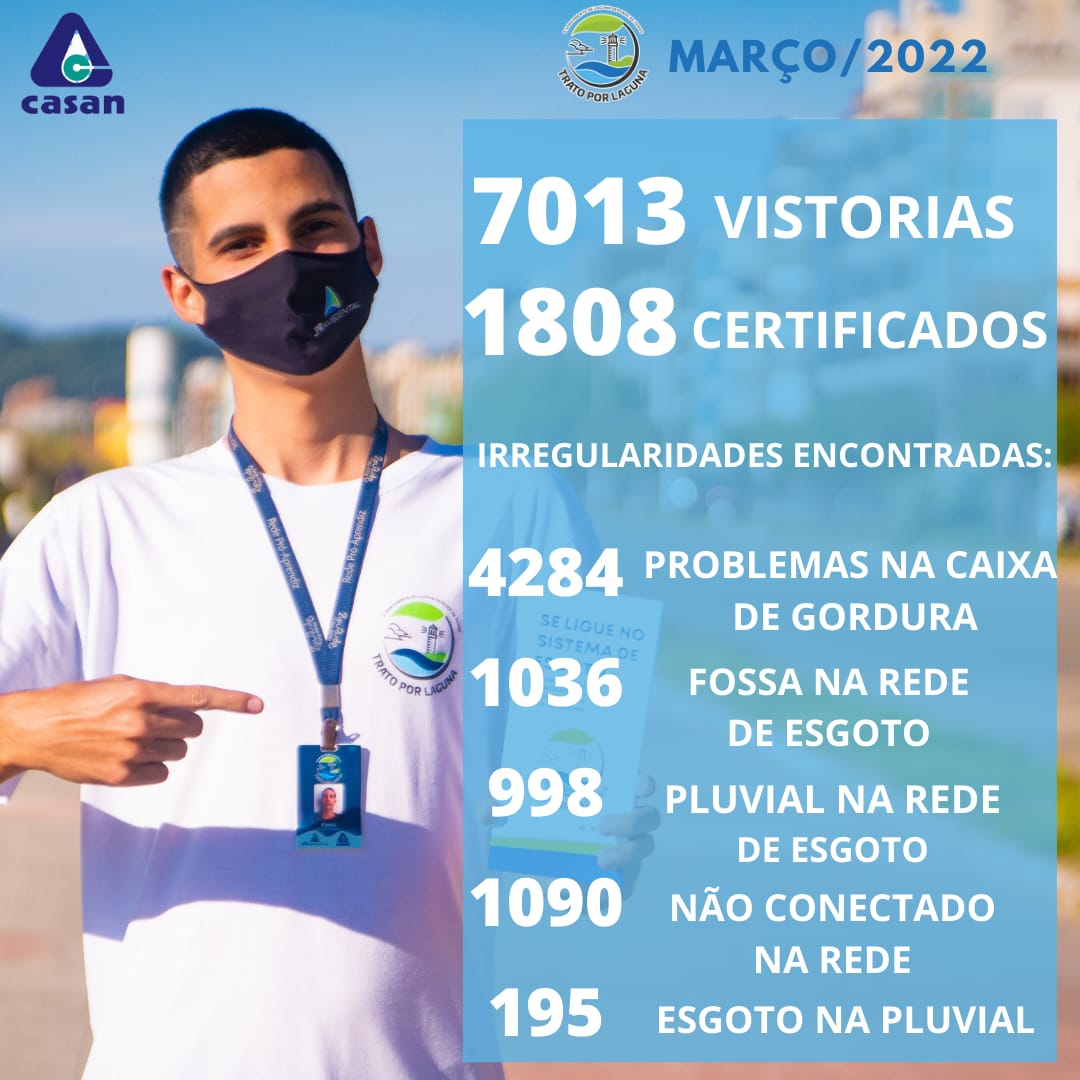 Completando a marca de 7000 vistorias, o Trato por Laguna, programa ambiental da CASAN, registra em balanço atualizado, taxa de 75% dos imóveis do bairro com algum tipo de irregularidade nas ligações de esgoto.