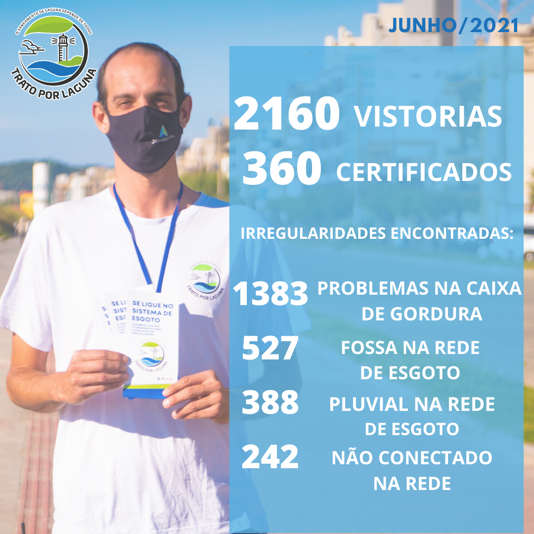 Os moradores de Laguna perceberam a importância da correta ligação de esgoto e estão fazendo a sua parte para melhorar o saneamento básico de Laguna. De acordo com o balanço de maio do Trato por Laguna, 110 imóveis já receberam o Certificado de Regularidade.
