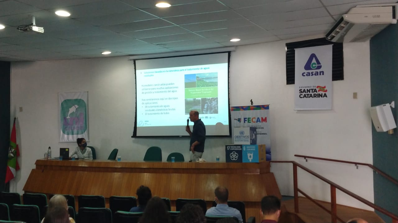 Na sequência, o professor Pascal Mollem, do INRAE/França, abordou a “Aplicabilidade dos wetlands construídos no tratamento de lodo e esgoto: experiências mundiais”. Durante a tarde, o CEO da empresa Rotária do Brasil, Christoph Platzer, vai falar sobre “Experiências nacionais e catarinenses na utilização de wetlands construídos para o tratamento de esgoto e lodo”.